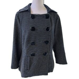 Luii Navy & White Striped Double-Breasted Cotton Jacket – Size Medium