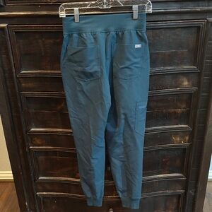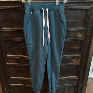 Women's Figs Zamora jogger scrub pants green with Pink Drawstring