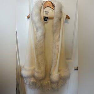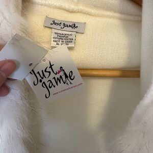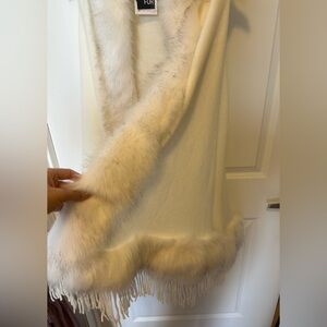 NWT Just Jaime white faux fur vest hoodie open cardigan. Fringe hem