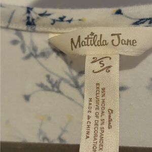 Charming blouse with blue floral design. Soft cream background. Ideal for any occasion.