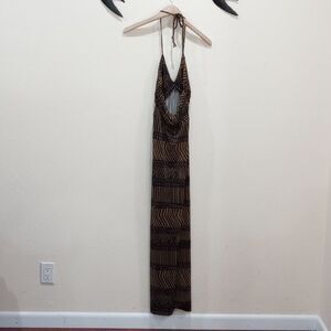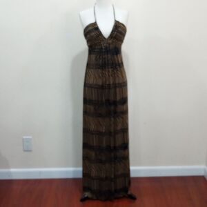 T-Bags Los Angeles Braided Halter Tiger Stripe Maxi Dress - Size S