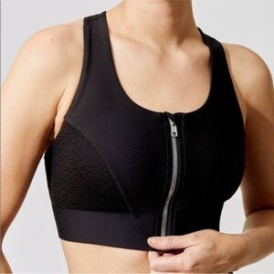 Carbon38 Front Zip Mesh Detail Sports Bra