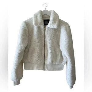 Urban Outfitter Sherpa Fuzzy Zip Up Cropped Ivory Womens Jacket SZ M