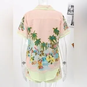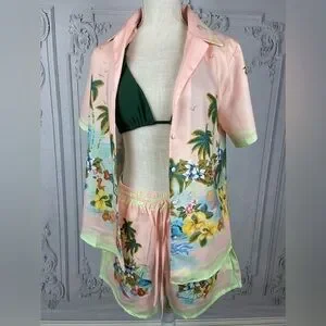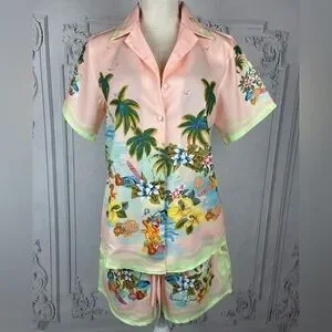 Cocomo Island Loose Fit Casual Shorts Set Single-Breasted Tropical Top