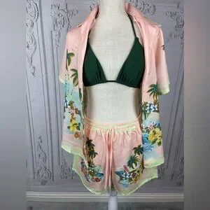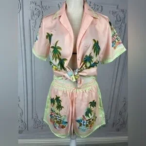 This masterpiece of a short set comes alive in a guava color with sun-drenched lush green palms in an Islander print. Elegantly breezy with its lightweight fabrication provides a fun movement, making this your soon-to-be favorite summer set. Slip into this printed short set on warm days or at your favorite island destination and boom—your outfit is complete!