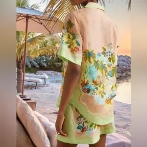 Vacation, Travel, Tropical Prints, Hawaiian Shirt, Trending Now, Street Fashion, Beachwear, Cruise, Beach Party, Pool Party, Palm Print, High Waist Shorts, Casual Wear, Weekend Wear, Lounging Shorts, Casual Shorts, Loose Fit Shirts, Caribbean, Island Wear, Resort Fashion, Resort Wear.