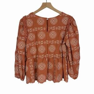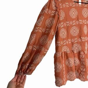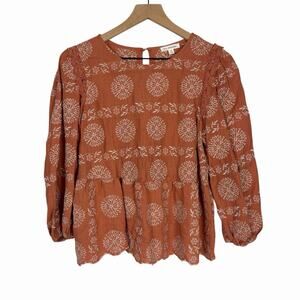 BLU PEPPER Women's Clay Orange Embroidered Peasant Blouse Top Size Small Boho