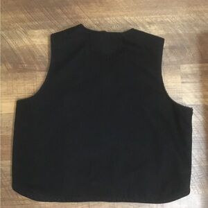 Durable 100% cotton washed duck. Relaxed fit Sherpa lined. Triple stitching on the main seams. Full center. Front zipper. Drop tail him. Two Sherpa lined front pockets and two inner pockets. In like new condition. Pictures don’t do this vest justice.