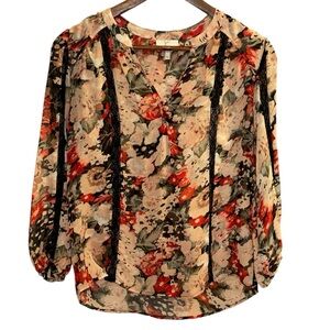 Crafted from an all over floral printed silk georgette, this ultra lightweight top by Joie features bracelet length sleeves, a slit v neck and contrast black lace inserts. Team this piece with your favourite skirt for an easy going look.