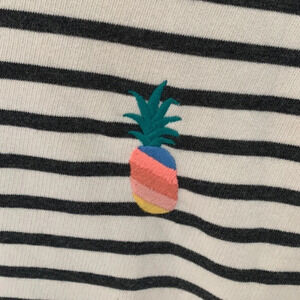 Crew neck, striped, embroidered multicolor rainbow pineapple