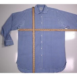 Hackett London Blue/White Gingham Check French Cuff Dress Shirt (42) 16.5-34
