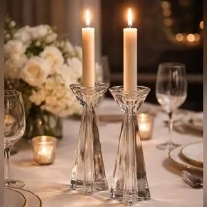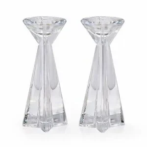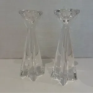 This striking pair features a tall, faceted silhouette with modern architectural lines, crafted from high-quality crystal with beautiful clarity and weight. A timeless design that works equally well styled for formal dining, modern interiors, or display.