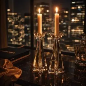 Elegant and sculptural Mikasa crystal candlestick holders from the Penthouse collection, screen used on the set of Cruel Intentions (Prime Video).