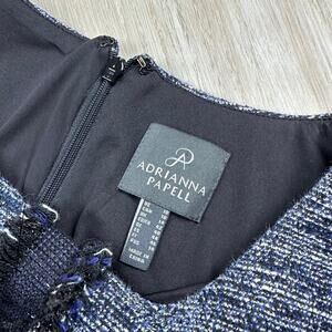Adrianna Papell Navy Tweed Knit Short Sleeve Elegant Office Chic Shift Dress 10
