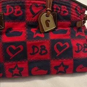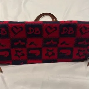 VTG Dooney & Bourke Red & Blue novelty canvas patchwork shoulder handbag NWT