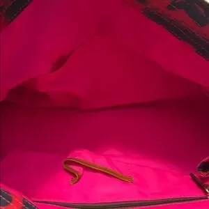 Stylish and versatile, this handbag features a striking red and blue design. Perfect for any occasion, it combines fashion with functionality. This is new never used large size lots is space great vintage bag