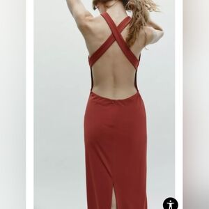 Chic sleeveless midi dress by Zara. Rich rust color. Perfect for versatile styling.