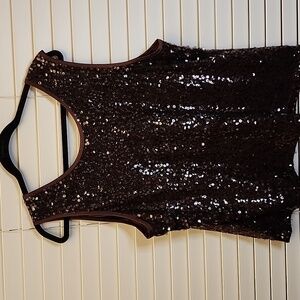 Chico's Sequined Top 3 XL Dark Brown Paillette Sequin Satin Going Out Party
