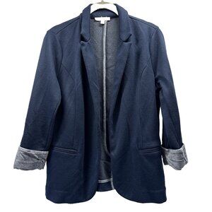 Skies Are Blue Asa Women's Blazer Sz S Blue Textured Knit Cuffed 3/4 Open Front