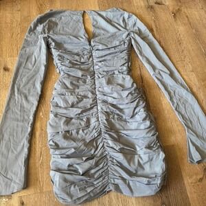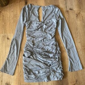 House of CB Blue CAMILLE Dove Grey Real Silk Mini Dress size Medium