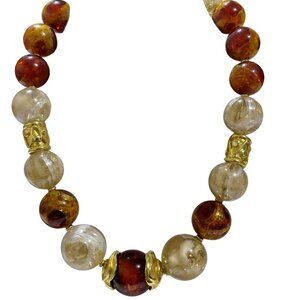 Vtg Chunky Lucite Amber Citrine Beaded Necklace With Gold-Tone Accents 17"