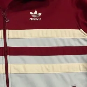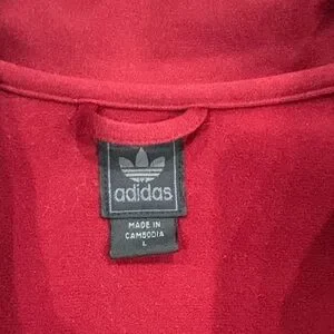 Adidas garment in rich red. Features classic logo tag. Large top and medium bottoms.