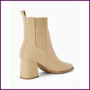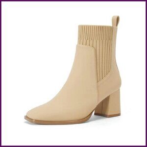 • Style: Slip-on ankle boot with a contemporary square toe and chunky block heel. Features a sleek, high-top design with subtle splicing detail for a fashionable edge.