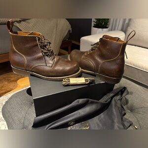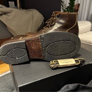 A collaboration with Carl Murawski in tribute to classic Americana work boots, it features a roomy reinforced toebox, stitchdown construction, and an unmistakable silhouette. Equipped with glove leather lining, full vachetta leather insoles, leather shanks & counters, Starfit heel pads, and Knight™ anti-slip durable rubber outsoles, the Brawler is built to last.