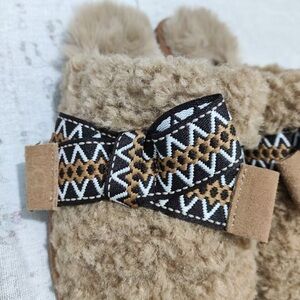 Design: Features a decorative patterned ribbon bow on the strap, plus a fluffy toe detail.