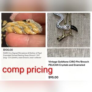 Stunning Ciro Signed Rhinestone & Mother of Pearl Enameled Resting Swan Brooch.