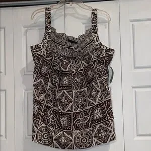 Stylish blouse with bold geometric design. Sleeveless and versatile for any occasion.