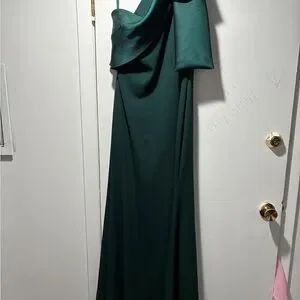 Betsy & Adam One Shoulder Dark Green Dress