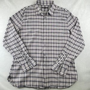 John Varvatos U.S.A. Shirt Mens XL Gray Black Plaid Button Front Long Sleeve