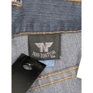 These Navigator USA Denim Jeans in size 28 feature a medium wash with heavy fade and stretch for comfort. The front and center leg seam accent adds a uniqueness to these jeans. They have a flared cut, a 28-inch waist, and a 29.5-inch inseam. Made of spandex and cotton, these jeans have a 4-pocket design, a zip and button closure, and are machine washable. A lightweight summer jean and perfect for a trendy and casual look. I would consider the color to be an indigo blue.
