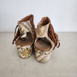 Very G Western Tramonte Fringe Wedge Sandals Tan Sz 7