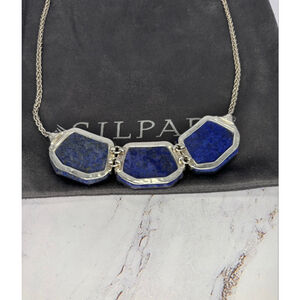 This gorgeous statement piece from Silpada is crafted out of Blue Lapis, Rock Crystal, and .925 Sterling Silver. Adjusts between 18-20" in length. Pre-owned and in excellent condition. Silpada Item: N3024. Retailed at $159.00 Hallmarked with the Silpada Logo.