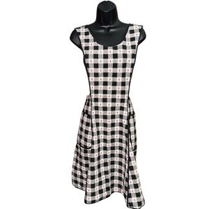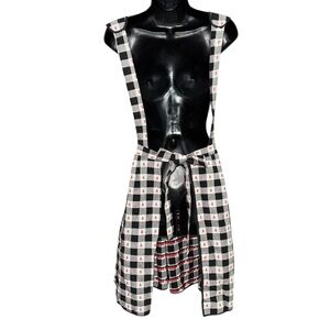 📌Ladybug Gingham Pinafore Smock Apron Black White Cotton Farmhouse Cottagecore