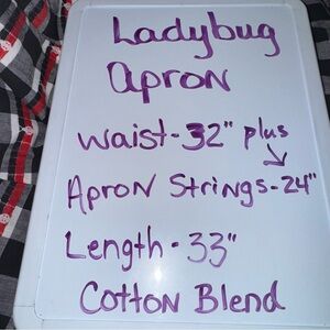 Charming vintage black and white gingham apron with an allover ladybug print. Classic tie-waist style with adjustable straps and a flattering fit. Lightweight cotton blend that’s perfect for cooking, baking, gardening, or farmhouse décor lovers.