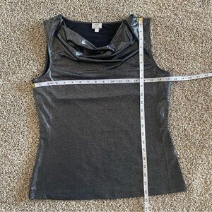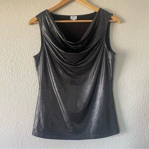 MIX by Tahari Metallic Liquid Cowl Neck Blouse Womens M Black Shimmer Sleeveless