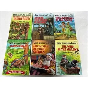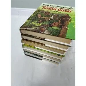 6 Great Illustrated Classics Children’s Books - Robin Hood, Tom Sawyer +More EUC