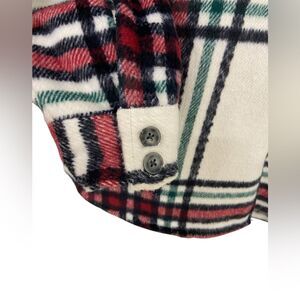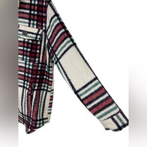 Natural Reflections Size L green, black, white, red fleece jacket shirt with/pockets button front with front chest pockets. Plaid Shacket, Oversized Shirt Jacket, Pockets, Wool Blend. Excellent Preowned condition. Dry clean.