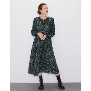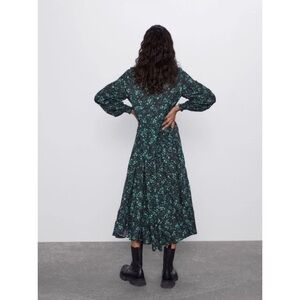 Zara The Angel Floral Midi Dress in Green and Black