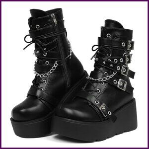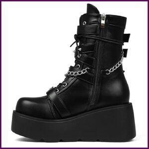 • Premium Durability: Crafted from high-quality leather material, these platform combat boots ensure long-lasting performance, maintaining their gothic allure through seasons of use.