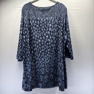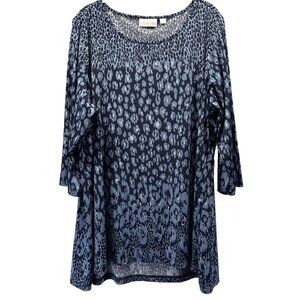 Belle by Kim Gravel Tunic Top 1X Plus Blue Paisley 3/4 Sleeve Stretch Pullover