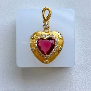 Gold Heart Pendant with red Gemstone