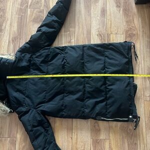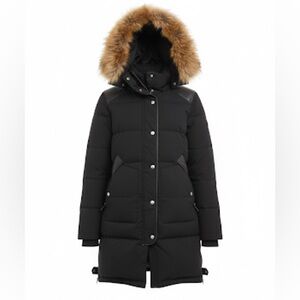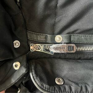 Elegant black puffer jacket by RUDSAK. Features a cozy removable fur hood. Ideal for cold weather.