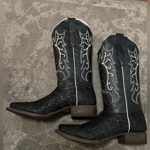 TANNER MARK COWBOY BOOTS 9.5 Black/white Shimmery Western Cowboy Boots NEW