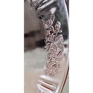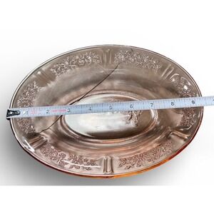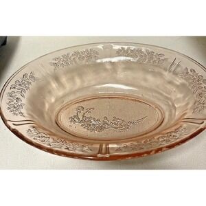 Discover a touch of vintage charm with this delicate pink depression Federal Glass Co. Sharon Rose Cabbage Rose oval vegetable or serving bowl. Its elegant oval shape is beautifully adorned with a floral etched design in the center, and a decorative floral border encircles the rim. Notice the subtle texture and the gentle luminescence of the glass. Perfect for displaying on a vanity, as a small trinket dish, or for its intended use, this piece adds a refined accent to any space. Consider it for a vintage-themed party, as a unique gift, or to elevate your everyday decor. Measurements shown in pictures.