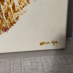 Stylish contemporary canvas artwork featuring a bold gold-toned lips design on a neutral background. The textured finish and metallic accents create a modern, eye-catching statement piece. Artwork is signed by the artist in the lower corner and comes stretched on a wooden frame, ready to hang.