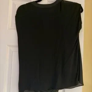 Chic black blouse with button-down front. Slight short sleeve design for versatile styling. Silk material in the front, cotton material in the back. Worn a few times.